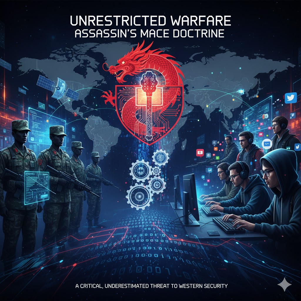 De intellectuele pijler onder China's asymmetrische cyberstrategie is het concept van 'Onbeperkte Oorlogsvoering' (Unrestricted Warfare), geformuleerd in 1999 door twee PLA-kolonels, Qiao Liang en Wang Xiangsui. De strategische essentie van deze doctrine is het neutraliseren van een technologisch superieure tegenstander, zoals de Verenigde Staten en de NAVO, door conventionele militaire confrontatie te vermijden en in te zetten op de kwetsbaarheden van de tegenstander buiten het traditionele slagveld.