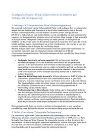 Dit strategische document analyseert China's groeiende cybermacht door zich te richten op de 'dubbele aard' van hun aanpak, namelijk de integratie van formele militaire eenheden met civiele cybermilities. De kern van deze strategie is de doctrine van 'Onbeperkte Oorlogsvoering', die pleit voor het neutraliseren van technologisch superieure tegenstanders door hun afhankelijkheid van technologie en kritieke infrastructuur aan te vallen, een concept dat ook wel de "Assassin's Mace" wordt genoemd. Het cybermilitiesysteem, gekenmerkt door professionalisering en Militair-Civiele Fusie (MCF), biedt de PLA een schaalbare reservemacht voor zowel defensieve als offensieve taken, inclusief strategische misleiding en beïnvloeding van de publieke opinie. Hoewel er uitdagingen zijn in fragmentatie en mobilisatie, vormt deze georganiseerde fusie van civiele expertise en militaire ambitie een cruciale, doch vaak onderschatte, bedreiging voor de westerse veiligheid.