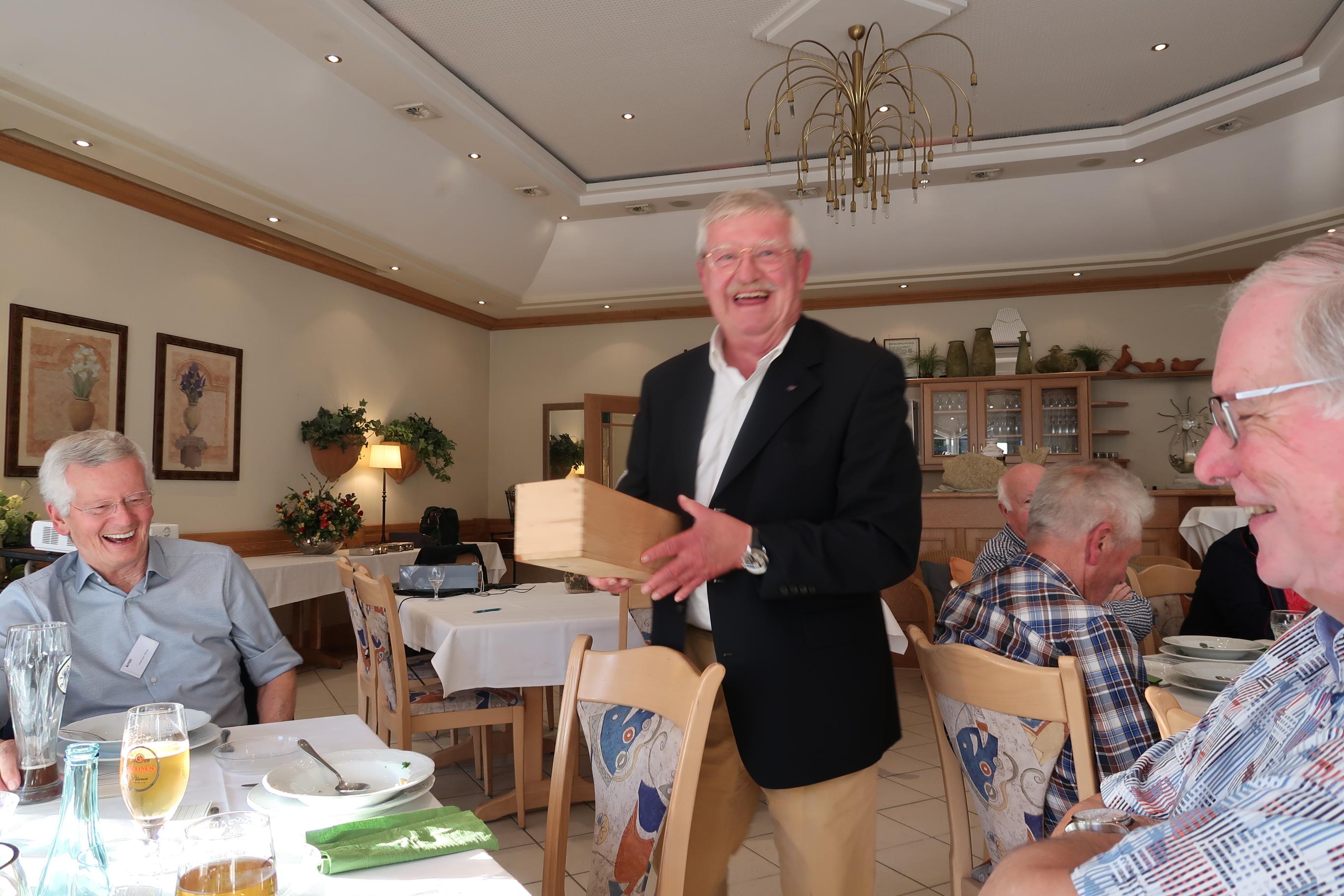 Terug in het hotel wachtte de penningmeester KVEO, Marcel Celie op ons voor een update over het toekomstige pensioensysteem. Er volgde een interessante en onderhoudende voordracht hierover die bij een aantal van ons toch wel enige zorg wegnam. De avond werd voortgezet met een uitstekend en geanimeerd diner en een gezellige nazit. Tijdens het diner hebben we afscheid genomen van Roy Meijnderts, tien jaar lang mijn voorganger als RO Duitsland.