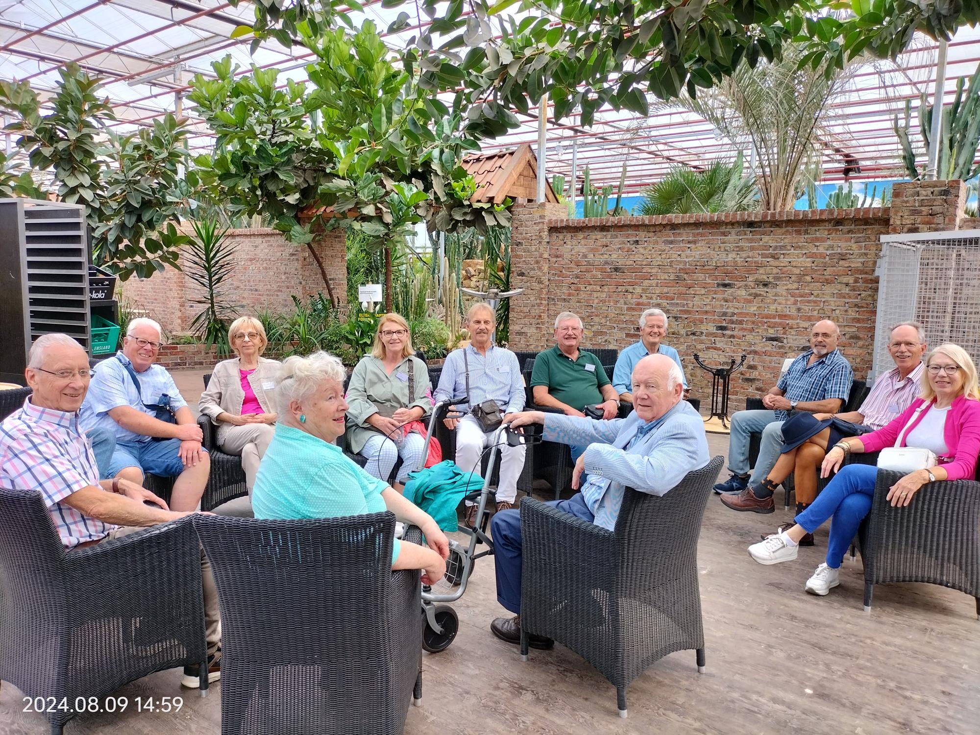 Het organiserend echtpaar Hans en Christine Kuijpers had voor een interessant en afwisselend programma gezorgd dat begon met een bezoek aan het park Emsflower. De rondleiding bracht ons allereerst naar afdeling productie waar bloemen en groenten worden gekweekt en dat alles op een geautomatiseerde en biologische wijze. Indrukwekkend om dat proces te zien. De rondleiding bracht ons vervolgens verder naar een prachtige vlindertuin, een tuin met tropische vogels, een tuin met aapjes en tot slot naar een nagenoeg geheel geautomatiseerde afdeling voor het transport naar de vele klanten van het bedrijf.